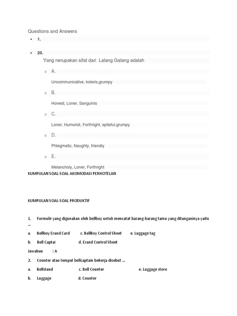 contoh soal front office beserta jawabannyacontoh file soal uts lengkap kelas 1 6 sd mi semua mata pelajaran 2016 2017 berikut ini adalah kumpulan dari berbagi sumber tentang soal pg dan jawabannya tentang front office yang bisa gunakan untuk bank soal download sd dan diunduh secara gratis dengan menekan tombol download biru dibawah ini.