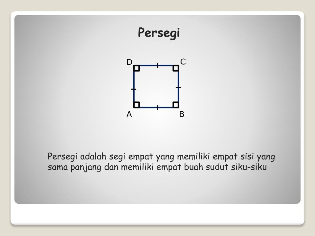 segi empat adalah bangun datar yang memiliki jumlah sisi empat buah.