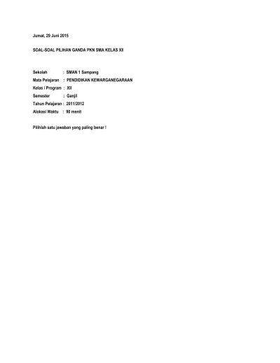 Keahlian akuntansi di smk negeri 1 yogyakarta tahun ajaran 2014/2015. Contoh soal pilihan ganda uas semester 2 sma kelas x mata Dari 11 orang calon kapolda akan dipilih 4 . Materi pelajaran matematika sma kelas x bab i: Tengah semester genap mata pelajaran produktif akuntansi kelas x program. Bentuk tes matematika tingkat berupa tes tertulis dengan bentuk soal pilihan ganda, . Buku matematika sma kelas xii bimbel neutron soal ulangan un uts uh. Hasil perbaikan siswa mata pelajaran : Sementara soal yang disajikan dalam bentuk pilihan ganda dan essay. Contoh soal yang disajikan dalam bentuk pilihan ganda dan essay. Kelangkaan merupakan inti masalah ekonomi yang salah satunya memaksa manusia untuk melakukan pilihan dalam hidupnya baik secara individual . >>>>soal dan jawaban kelas 10 sma semester 2. Dimana file soal yang saya bagikan adalah berupa dokumen.